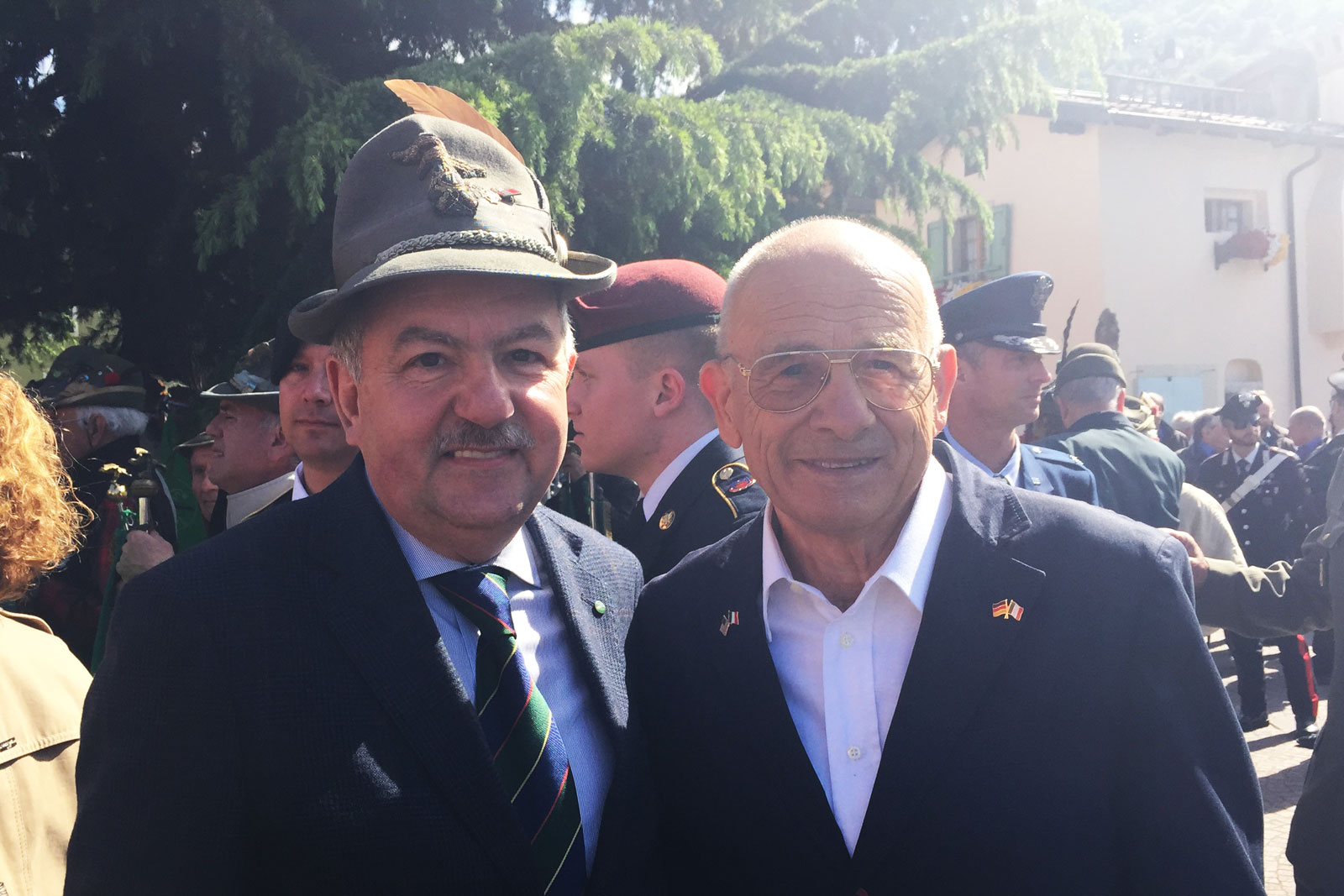 I was seven years old when one day in late February I saw a formation of American bombers soaring over our village. The sky was full of planes, fire, smoke and explosions from the heavy German flak on the ground. One of the planes was hit and I vividly remember seeing the airmen bailing out of it just before it crashed into a mountain. The following day I saw two of the airmen, who had been captured by the Germans in the town square. I will never forget those handsome Americans with their open friendly faces, so unlike the descriptions we children had heard in Nazi-Fascist propaganda. Later the valley was shocked by the news that those young men had been killed by the Nazis, while being walked to their headquarters twenty km. away.